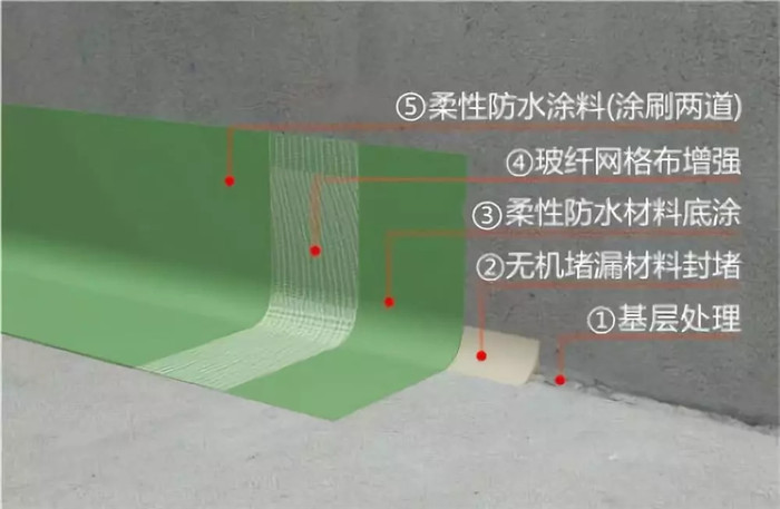 其次,一般防水涂料施工是从上往下刷,这样就容易造成涂料的堆积。厚厚的一层涂料堆积在墙角,一来不容易干燥,二来容易产生裂缝。