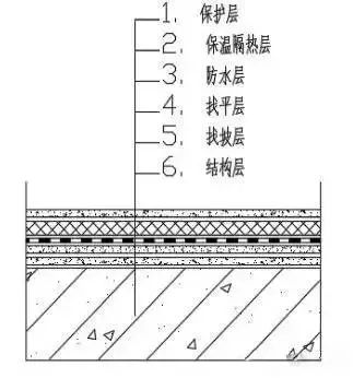 那么是不是采用倒置式屋面就可以解决问题呢?也不尽然。倒置式屋面是将防水层做在保温隔热层的下面,一般的构造层次由下至上依次为:结构层、找坡找平层、防水层、保温隔热层、保护层面层等(见图2)。