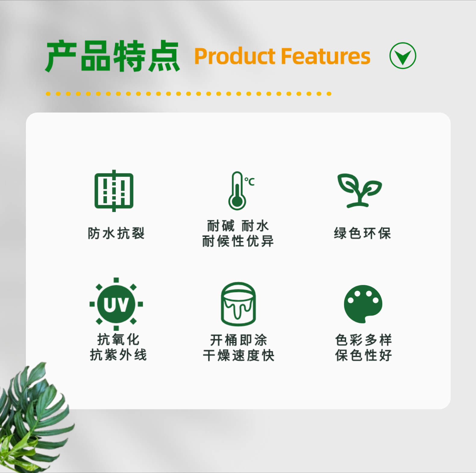 贝壳佳外露型多彩防水系统,防水+装饰二合一:无需单独做防水工序,系统本身具备高强度防水性能,色彩多样,保色性好,告别单调墙面!